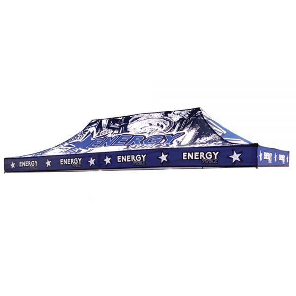 This canopy tent top will fit a 20 ft. x 10 ft. size frame. Selecting this item will give you a custom canopy tent graphic only.