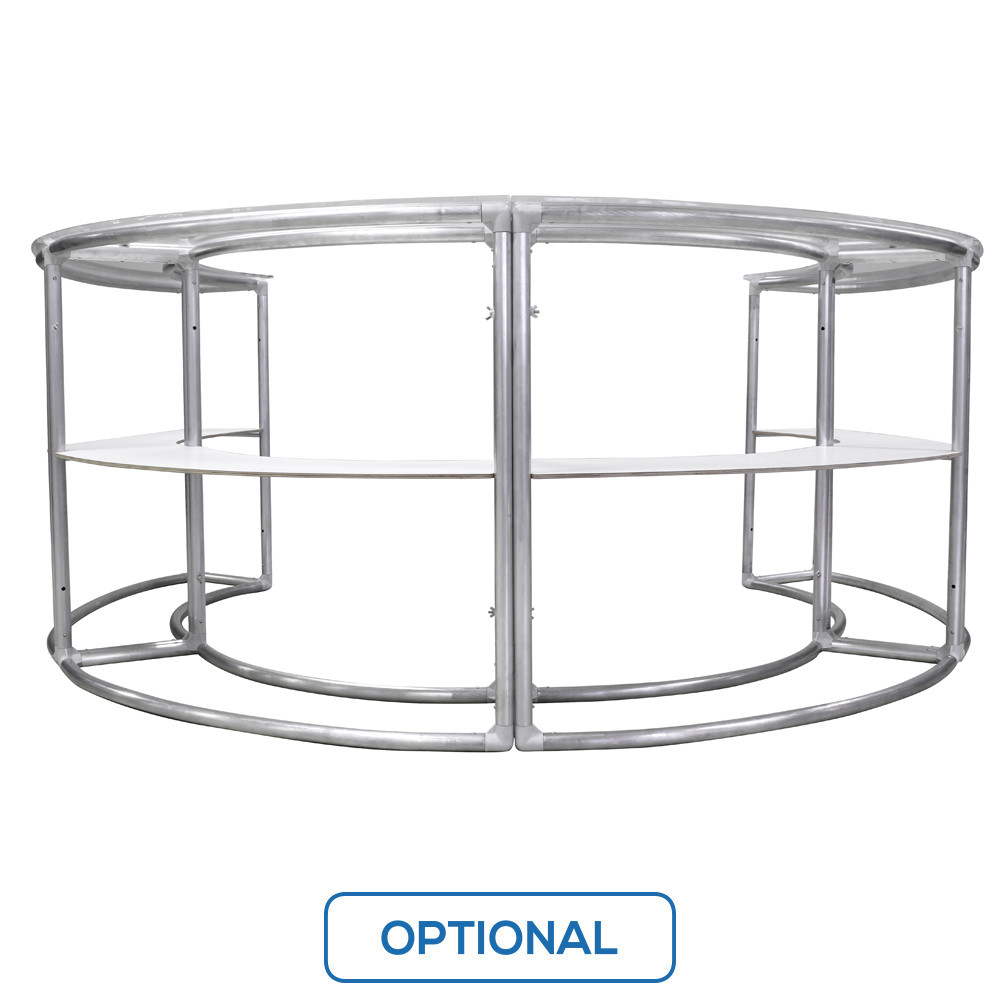 With the Quad, four Curved frames are secured together to create a much larger width and longer curve around. Graphic wraps around the entire structure.