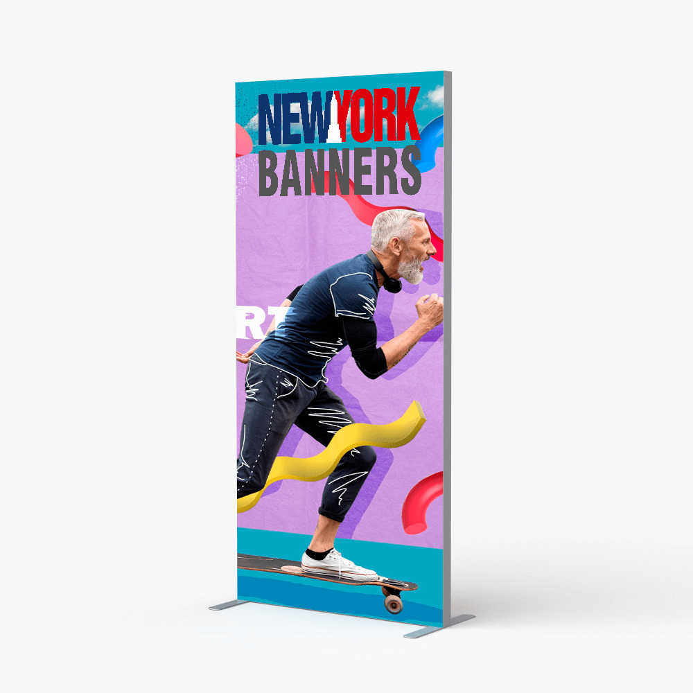 - 33″ x 79″ display with UV printed fabric graphic
