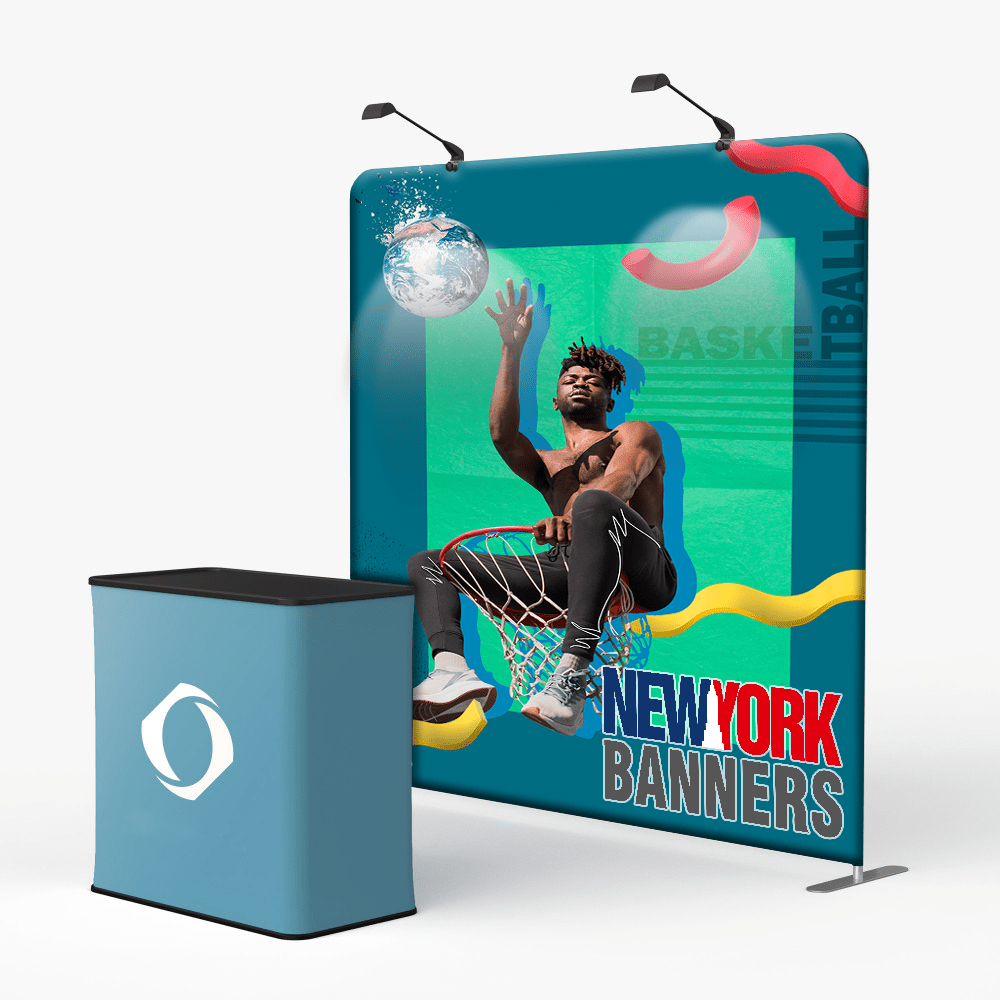 Our Tension Displays consist of a lightweight but durable aluminum hardware and a Fabric Dye-Sublimated Print. The hardware is inserted inside the print, much like a pillow into a pillowcase. The fabric print is stretched tight across the frame and zipped close.