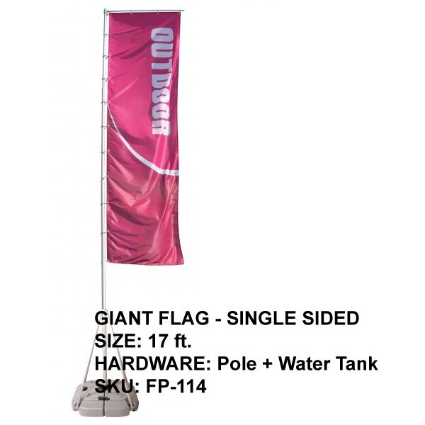 The Giant Flag is suitable for indoor and outdoor events. Effectively advertise your logo or message with our large giant flag. Leak proof water base for secure installation.