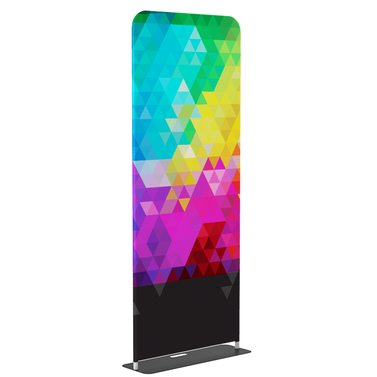 Tension Fabric Stands are the latest in indoor stand-alone advertising. The interlocking tube hardware is lightweight and built for lightning quick setups, no tools necessary! Once the hardware is in place just slip the “pillow-case” stretch fabric graphic over the frame, zip the graphic closed and set-up is complete. Graphics are full-color custom dye-sub. Add the double-sided option for twice the graphic impact.