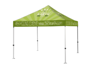 We have large format printing capabilities, so your large tent for events can be printed from seam to seam for a professional look that is sure to be noticed. Our tents are made with weather resistant polyester tent material and heavy duty aluminum hardware is included for strength and durability. The legs are telescopic, so you can adjust the height to fit your needs and available space.